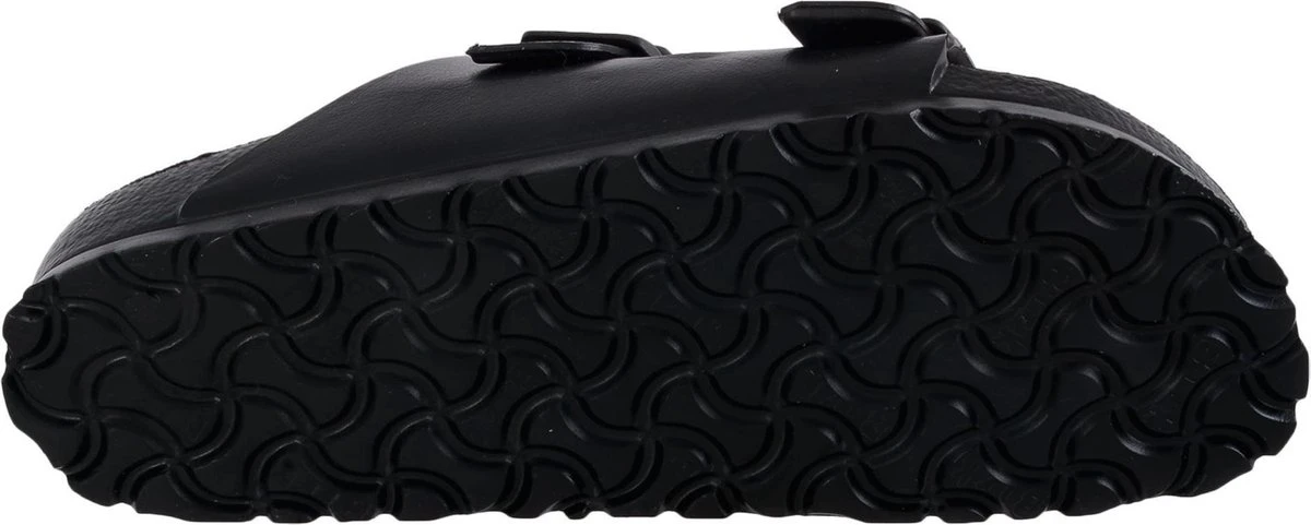 De Birkenstock slippers hebben een diepe hielkuil die de voet houvast geeft en veel ondersteuning biedt. Door de verdikking in het midden wordt de drukverdeling van de middenvoet naar de voorvoet ondersteund. Onder de tenen zit een opstaande rand die veel grip geeft. Hierdoor wordt een natuurlijke loopgang gecreë/erd.